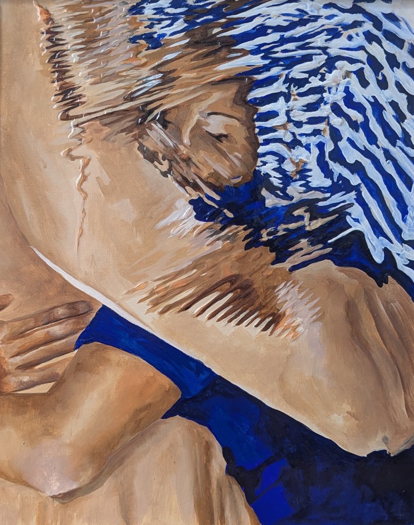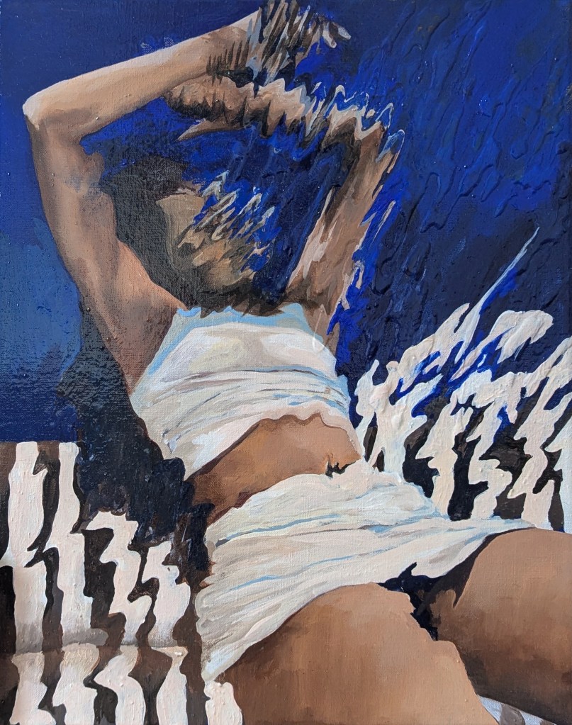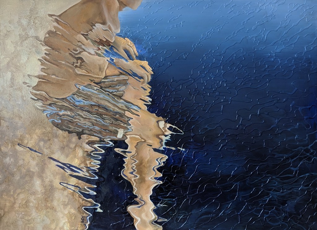 La représentation d’une réalité différente peut aider à supporter le monde présent. Qu’il s’agisse d’un souvenir, d’un instant furtif de vie, embelli ou modifié par le temps, d’un fantasme ou de simples rêveries. Le filtre de l’eau raisonne avec l’incomplétude de ces idées. On se perd naturellement devant le miroir de l’eau, ses lacets en mouvement dont l’apparence change constamment. C’est un lieu sans emprise, un élément thérapeutique.